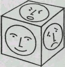 1-й вариант. Учитель бросает кубик, на каждой грани которого схематически изображено лицо, выражающее какое-либо эмоциональное состояние. Дети изображают соответствующую эмоцию. Тот, кто удачнее других выполнит задание, будет бросать кубик следующим.