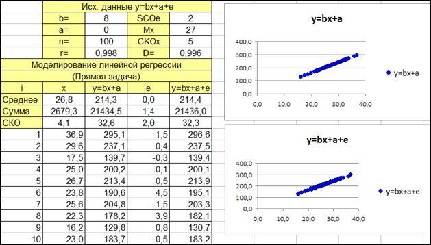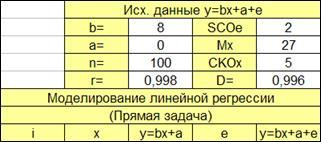 - синтез модели Монте-Карло парной линейной регрессии (прямая задача).