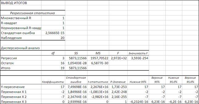1.7. Идентификация с помощью «Пакета анализа - Регрессия»