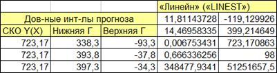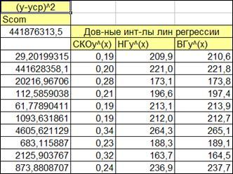 - оценка существенности параметров линейной регрессии и доверительные интервалы линии регрессии.