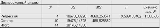 Эта операция проводится с помощью инструмента анализа данных Регрессия. В диалоговом окне при заполнении параметра входной интервал Х следует указать все столбцы.
