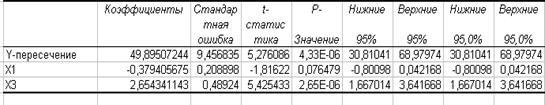 У = 49,89 – 0,37Х1 + 2,65Х3.