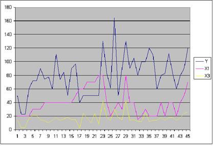 следовательно фактор Х3 оказывает большее влияние на У, но в ММР включаем и Х2 и Х3, т.к. Явление МК отсутствует.