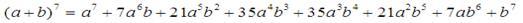 Первая строка в этой таблице содержит биномиальные коэффициенты для n = 1; вторая - для n = 2; третья - для n = 3 и т.д. Поэтому, если необходимо, например, разложить выражение: