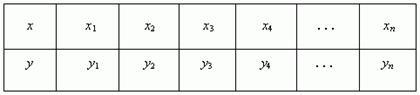 1) Записать ряд значений функции и её аргумента в таблицу: