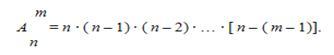 Размещения. Будем составлять группы из m различных элементов, взятых из множества, состоящего из n элементов, располагая эти m взятых элементов в различном порядке. Полученные комбинации называются размещениями из n элементов по m .