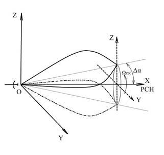 –фазовый угол, угол между плоскостями ХОУ и ХОЦ.
