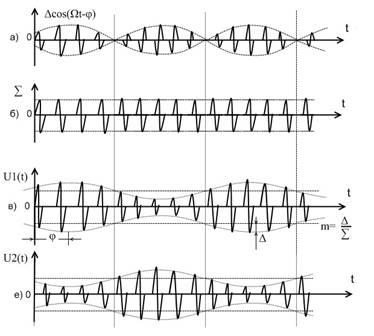 Переменная составляющая частоты биений будет иметь вид: