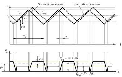 Тогда частота биений для восходящей и нисходящей ветвей принятого сигнала (Рис.33) будет отличаться от восходящей и нисходящей ветвей излучаемого сигнала и может быть записана как: