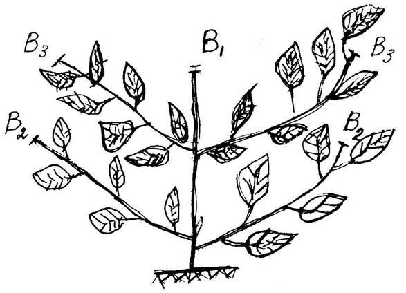 На 3-м или 4-м настоящем листом в конце плети первого порядка прищипываем. А затем производим прищипывание на плетях второго (над 5-м листом) и третьего порядка (над 7-м листом).на контрольной делянки прищипку не производим.