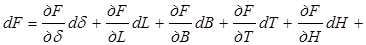 Анализируя это уравнение можно найти соотношение между приращениями элементов судна и метацентрической высоты. Это удобно сделать, рассматривая эти соотношения раздельно, при следующих исходных условиях: