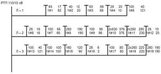 · составлены расчётные схемы сетей 10 – 35 кВ;