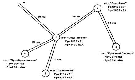 Рис. 1.4. п/ст "Будёновск" с присоединёнными линиями 10 кВ
