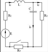 Определить токи в ветвях и напряжение на конденсаторе во время переходного процесса в данной схеме (схема 1). Построить графики зависимости этих величин от времени.