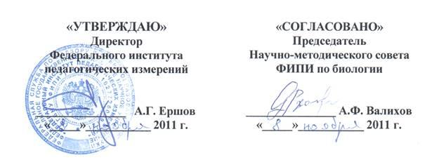 Кодификатор элементов содержания и требований к уровню подготовки выпускников общеобразовательных учреждений для единого государственного экзамена 2012 года по БИОЛОГИИ