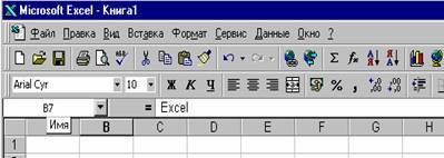 Текущая ячейка помечена указателем. По умолчанию ввод данных и некоторые другие действия относятся к текущей ячейке.