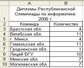 1. Выделить числовые данные в диапазоне B3:B10 таблицы и вызвать Мастер диаграмм