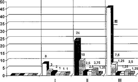 Течение раннего неонатального периода характеризовалось наличием пограничных состояний, проявившихся токсической эритемой, отечным синдромом, гипербилирубинемией (таблица 5.3). Токсическая эритема встречалась одинаково часто во всех группах - в 1-ой - у 20,0%, во П-ой - у 18,8% и в Ill-ей - у 20,0%) новорожденных. Отечный синдром, свидетельствующий о нарушении водно-солевого обмена, чаще отмечался у недоношенных детей и характеризовался транзиторной потерей массы тела более 10%.