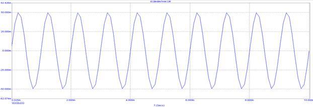 С использованием этой программы был проведен анализ узлов схемы по постоянному току, расчет мощности рассеиваемой на элементах схемы, построены временные диаграммы сигнала на входе и выходе рассчитана АЧХ. Построение АЧХ потребовало перевода из децибел, перевод осуществлялся согласно выражениям:
