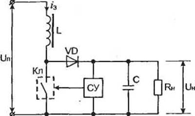 где Q - заряд, накопленный индуктивностью в первой фазе и передаваемый конденсатору; С - емкость фильтрующего конденсатора; Q = tр iр.