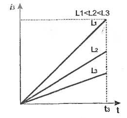 При прочих равных условиях (напряжении питания и времени заряда) ток в индуктивном элементе к моменту окончания времени заряда будет тем больше, чем меньше индуктивность L. Этот простой, но очень важный вывод мы сделали исходя из того, что в полученном выражении индуктивность Lстоит в знаменателе. Понятно, что чем меньше индуктивность, тем легче дросселю "набирать" ток. Зависимость скорости нарастания от величины индуктивности показана на рис.3.