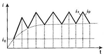 В то же время ток нагрузки определяется током заряда дросселя и не может стать больше i3. Ранее мы также выяснили, что ток i3 в индуктивности нарастает по линейному закону: