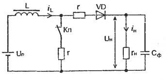 где Uo - напряжение на конденсаторе к моменту окончания заряда дросселя (заряд дросселя L и разряд конденсатора С происходят одновременно).