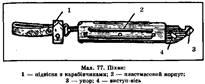 3. Відокремити шомпол (мал. ). Відтягнути кінець шомпола так, щоб його головка вийшла з-під упора на основі мушки, і витягти шомпол догори.