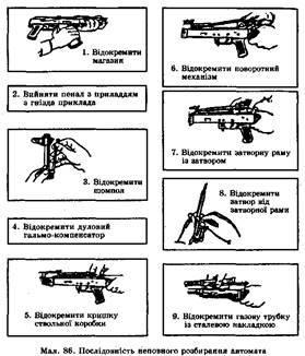 Послідовність неповного розбирання автомата повторіть за скороченою схемою (мал.).