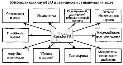 Вне зависимости от характера производственной деятельности на объекте по решению руководителя могут создаваться службы ГО: оповещения и связи, медицинская, радиационной, химической и биологической защиты, охраны общественного порядка, противопожарная, энергоснабжения и светомаскировки, аварийно-техническая, убежищ и укрытий, транспортная, материально-технического снабжения и другие. На них возлагается выполнение специальных мероприятий и обеспечение действий формирований при проведении аварийно-спасательных и других неотложных работ.