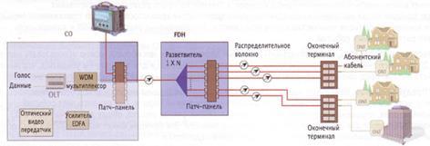 Тестирование основного и распределительных волокон от центрального офиса (CO) к оконечным терминалам