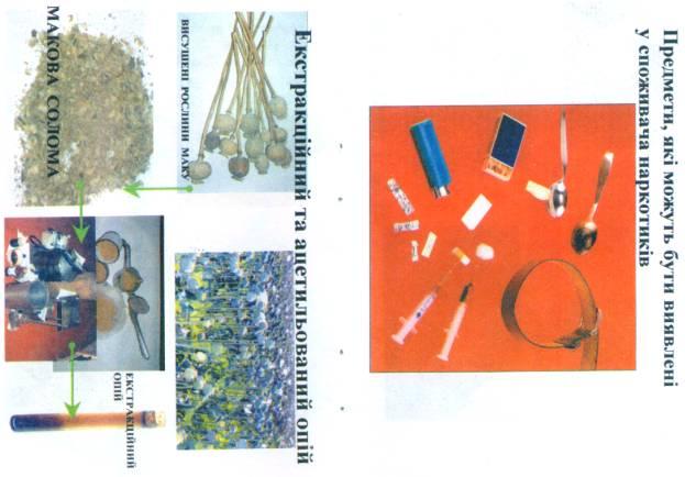 - використовувані при виготовленні наркотиків предмети (м'ясорубки, миски, ножі, ваги, сита, преси і т. д.);