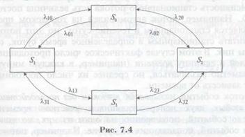 7.6. Рассматривается круглосуточная работа пункта проведения профилактического осмотра автомашин с одним каналом (одной группой проведения осмотра). На осмотр и выявление дефектов каждой машины затрачивается в среднем 0,5 ч. На осмотр поступает в среднем 36 машин в сутки. Потоки заявок и обслуживаний – простейшие. Если машина, прибывшая в пункт осмотра, не застает ни одного канала свободным, она покидает пункт осмотра необслуженной. Определить предельные вероятности состояний и характеристики обслуживания профилактического пункта осмотра.