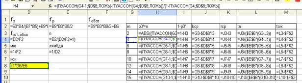 Розрахунок параметрів функціонування одноканальної замкненої Пуасонівської системи масового обслуговування (для кількості постів n = 1) виконаємо для різної кількості автомобілів (від кількості автомобілів m = 2 до наданого числа автомобілів m = 15, із кроком 2.