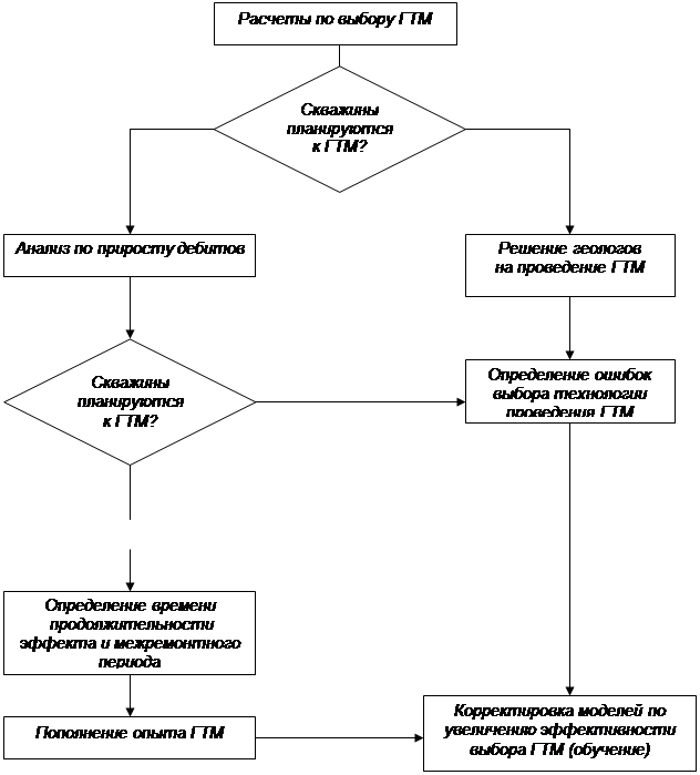- выбор объектов (месторождений, залежей) для назначения и проведения вычисленных ГТМ (блок 4);