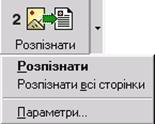 - зберегти дозволяє передати результати розпізнавання у обрану програму чи записати їх у файл. Зовнішній вигляд іконки міняється в залежності від обраного режиму збереження; підпис Зберегти