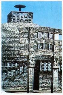 Из глубокой древности дошли до нас интереснейшие памятники архитектуры. Буддийские святилища-ступы внешне очень напоминают колокол. При взгляде на них неосознанно возникают мысли об их космическом происхождении — настолько они необычны. Основу их составляет насыпной холм, выложенный кирпичами или покрытый побелённой штукатуркой. Верх сооружения венчает