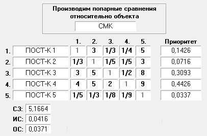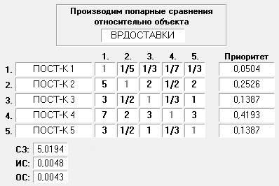 Окончательный выбор поставщиков осуществляется на основе результатов аддитивной свертки критериев по каждому из поставщиков и выбора наибольшего значения.