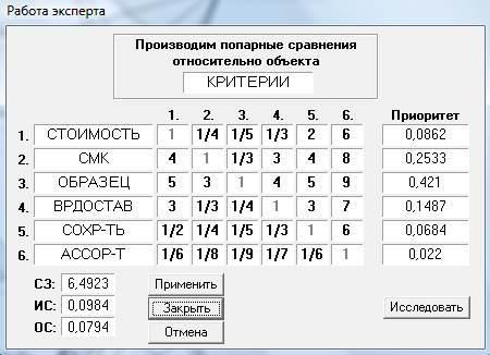 Использование метода анализа иерархий позволило в данном случае провести комплексную оценку каждого потенциального нового поставщика по всем отобранным основным критериям с максимально полным использованием всей имеющейся информации.
