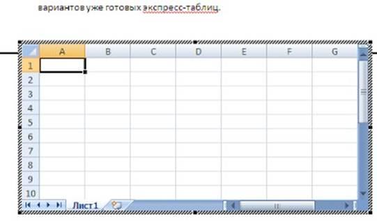 При этом в документ вставляется "настоящая" электронная таблица Excel, а верхняя лента текстового редактора Word заменяется на ленту электронной таблицы Excel. Переключаться между программами можно путем двойного щелчка на поле документа Word или на поле таблицы Excel.