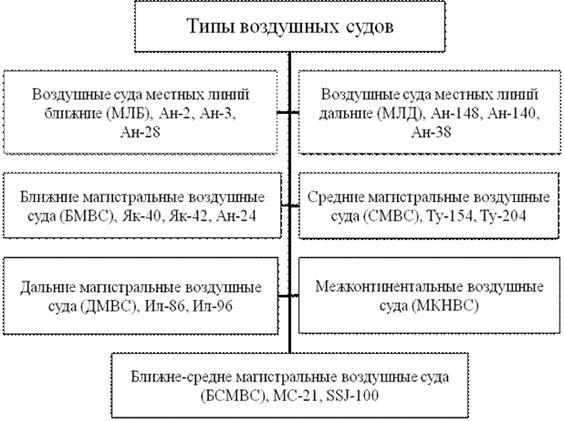 Особое значение для гражданской авиации имеет классификация воздушных судов в зависимости от их дальности полета, в соответствии с рисунком 2.12: