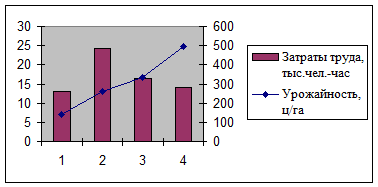 Проведенный анализ показал, что повышению уровня урожайности способствует не только повышения плодородия почвы, но и снижение трудовых затрат на 1 ц за счет использования современной техники. Таким образом, важнейшим фактором повышения эффективности производства картофеля является интенсификация производства, то есть замена ручного труда на механизированный, что позволяет экономить не только время, но и снижать расходы на оплату непроизводительного труда.