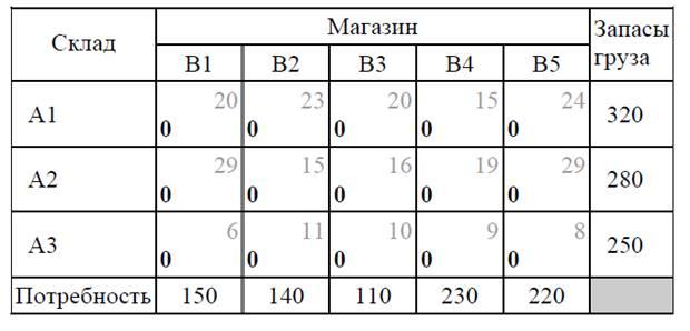 В качестве неизвестных величин выступают объемы продукта, перевозимого из каждого пункта производства в каждый пункт потребления, соответственно обозначаемые xij