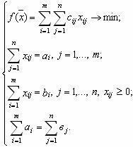 В силу ограничений нетрудно увидеть, что ЗТЗ является задачей ЛП и может быть решена симплекс-методом после приведения ее к специальному виду. Но структура системы ограничений имеет некоторою специфику, а именно: каждая переменная х ij