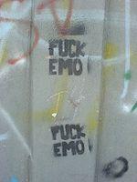 значение:безбашенный человек, по своим поступкам кажущийся больным, но эмо неотъемлемый стиль, в который так же входит слушанье музыки типа: «Punk - Rock».