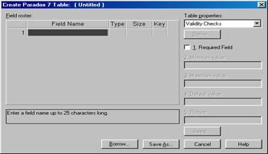 можно потребовать обязательного заполнения поля при вводе новой записи. Также можно контролировать минимальное и максимальное значение числового поля в строках Minimum
