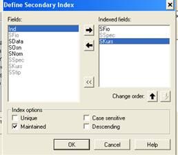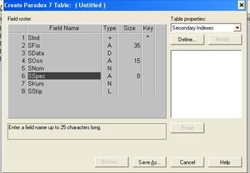 . Двойной щелчок мышью определяет ключевое поле. Ключевыми могут быть только первые поля, то есть второе поле сможет быть ключевым только вместе с первым.