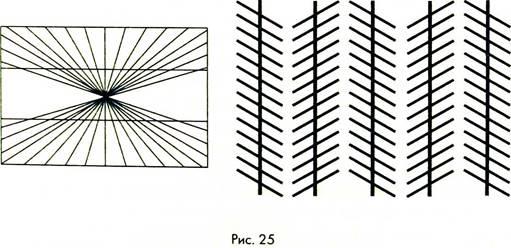 5) иллюзии искажения направления линий под влиянием других линий фона: