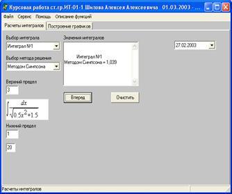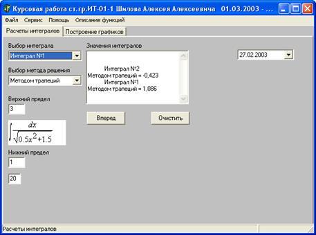 6. Нажав клавишу «Вперед» вычислить значение интеграла