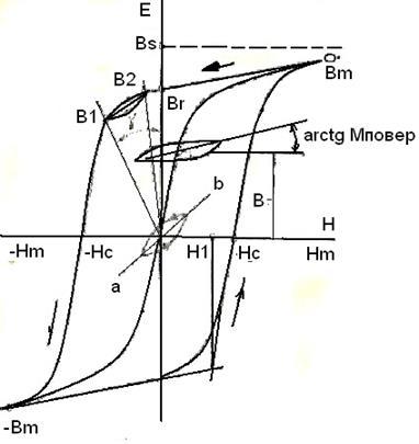 Крутизна окремих ділянок петлі гістерезис визначається диференціальною магнітною проникністю [6]: